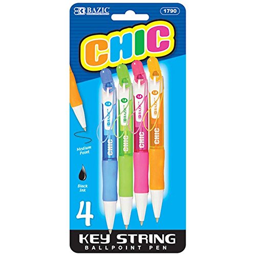 BAZIC Chic Mini Retractable Pen w/ Detachable Key String (4/Pack)