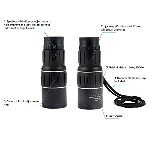 Ohuhu 8x40 Waterproof & Dual Focus Monocular Telescope / Monocular Scope for Birds Watching/ Hunting/ Camping/ Hiking Armoring/ Sightseeing/ Surveillance/ Races, Black
