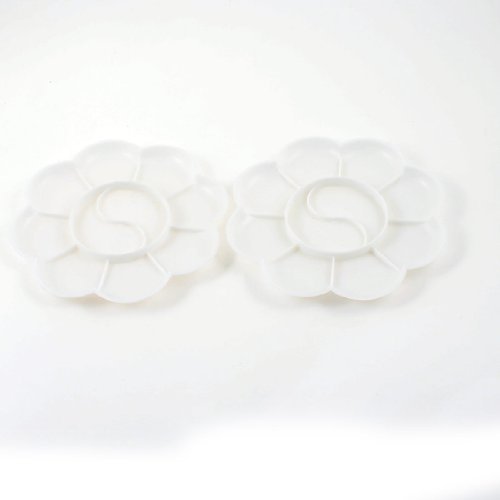 -. Title : Water & Wood 2 Pcs White Plastic Flower Shape Watercolor Paint Plate Tray Mixing Palette