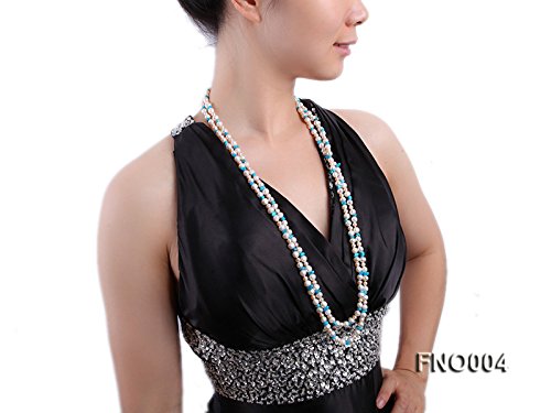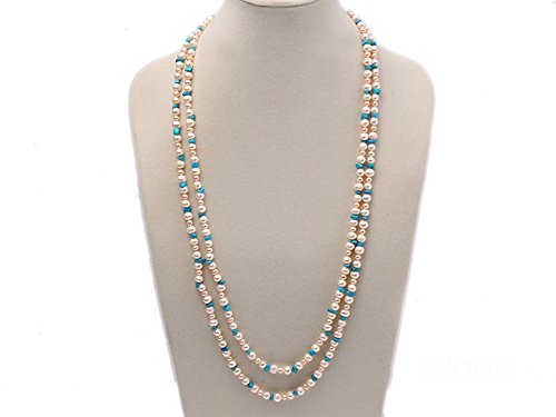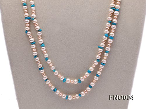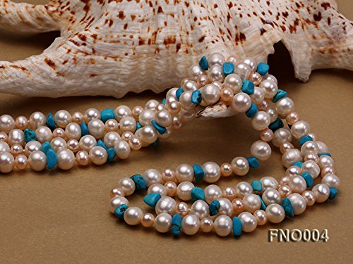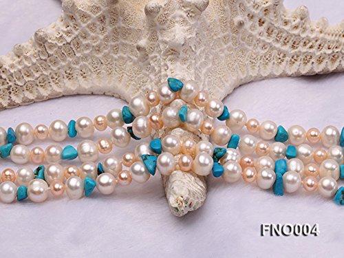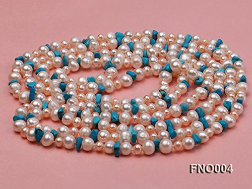 Description *This is a freshwater cultured pearl necklace made with 4-8mm natural white and pink pearls. It is also dotted with some turquoise beads.
