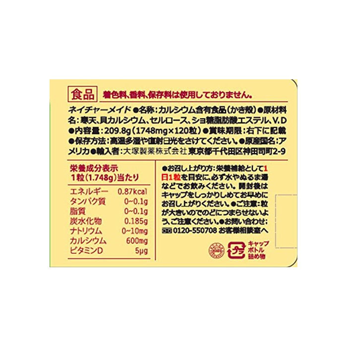 원본상품명: 大塚製? ネイチャ?メイド ス?パ?カルシウム 120粒