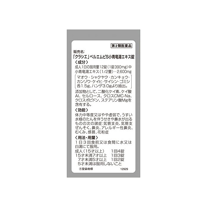 클라시에 한방 【제2류의약품】「클라시에」벨 M《피》S소 청용탕엑기스정 192정