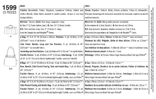 -. Feature : SIMPLICITY 1599 SEWING PATTERN / Bags in three styles designed for coordinating fabrics / SWEET PEA TOTES