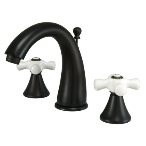 Kingston Brass KS2975PX Naples Widespread Lavatory Faucet with Porcelain Cross Handle, Oil Rubbed Bronze