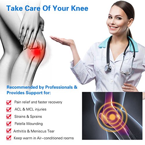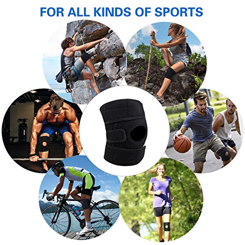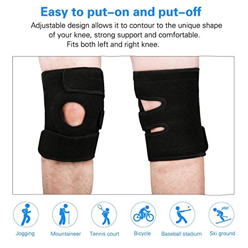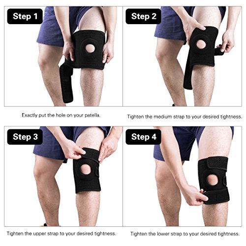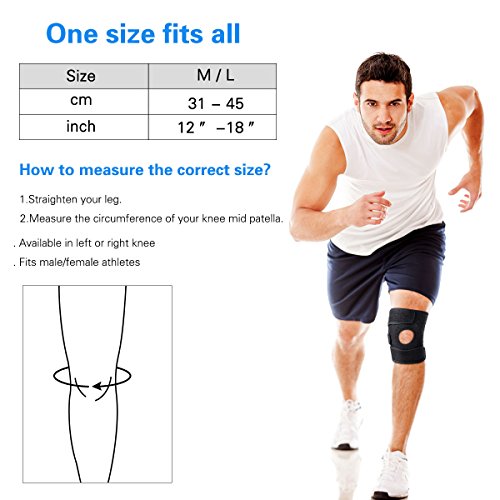 -. Feature : 【Reduce Pain】 It can prevent injury, and comfortable support pain relief from Arthritis, Bursitis and Tendinitis, effectively support your kneecap, it will help reduce the risk of further knee injuries occurring. Allows for better knee mobility and exercise performance. / 【Free Size】 3 pull straps belts designed for users with different size needs. Adjustable straps around the knee for added support, proper fit and comfort. Fits either left or right knee. (12" ~ 18" knee circumference) / 【Comfortable & Breathable 】 With moisture wicking lightweight neoprene and no slip silicone strips, It ensures that compression is uniform. The knee brace can stays in place for any physical activity. It will keep you comfortable all the day. / 【Wide Application】 Our knee brace is carefully designed, material durable and well constructed. It is ideal choice for Running, Cycling, Hiking, Basketball, Football, Tennis, Volleyball, Skiing,Jogging, Walking, Yoga, Gymnastics, Baseball, Martial Arts, Golf, Hockey, Dance, Soccer or Any Sports Activities. / 【Best Guarantee】If you don't absolutely love it, we will gladly give you a refund within 30 days. If you find any defects in the materials or workmanship of this product within 12 months, simply let us know, and we will try our best to make it right. If you meet any question, please contact us, we will fix your issue within 24 hours.