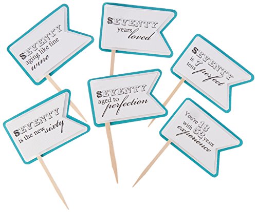 All About Details Teal 70th Birthday Quotes Cupcake Toppers, Set of 12