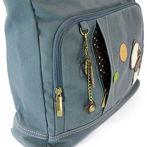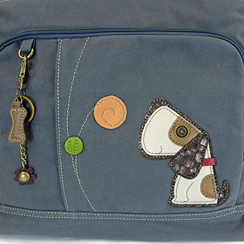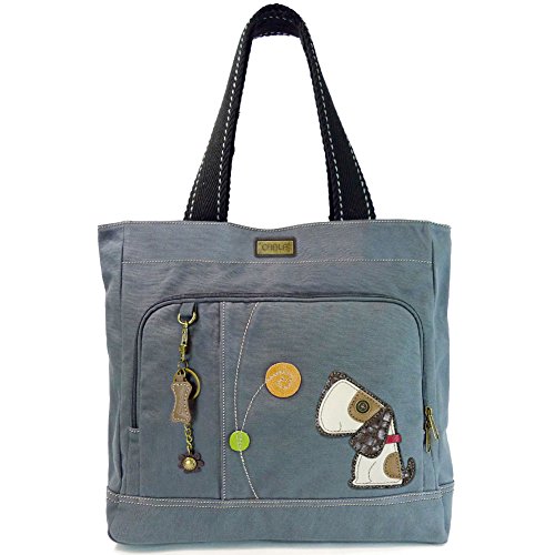 -. Brand : Chala -. Color : Indigo -. Department : womens -. EAN : 0619176240693 -. Feature : Front has two zippered pockets. Leaf Key chain included. Material: Canvas / Has a roomy interior that features three sturdy pockets built into the patterned lining. / The black cotton strap's special webbing ensures the wearer's comfort / It is perfect for carrying notebooks, tablets, and other gadgets. / Tote Dimensions: 17" X 4.5" X 14" Handle Drop: 9.5" -. MPN : 824DG9 -. PartNumber : 824DG9 -. ProductGroup : Apparel -. ProductTypeName : LAGE -. Size : 17" X 4.5" X 14" -. Title : Toffy Dog Pocket Tote (Indigo) -. UPC : 619176240693