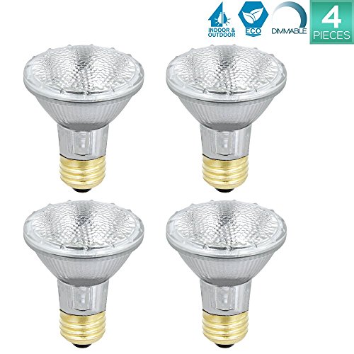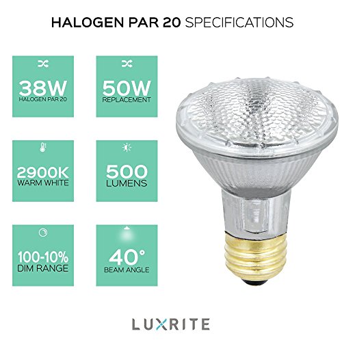 Luxrite LR20613 (4-Pack) 38PAR20/120V 38-Watt Eco Halogen Par20 Light Bulb, Dimmable, Equivalent to 50W Incandescent, 2900K, 500 Lumens, E26 medium base
