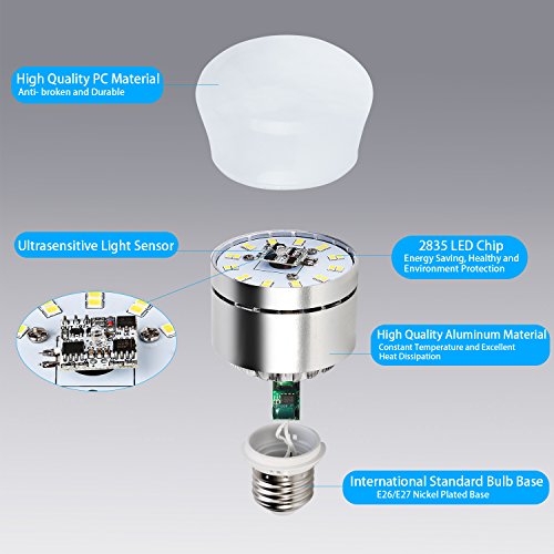 ☀ EASY INSTALLATION: The dawn to dusk sensor Light bulb will fit into any regular E26/27 bulb socket. It does not require additional features or fixtures.