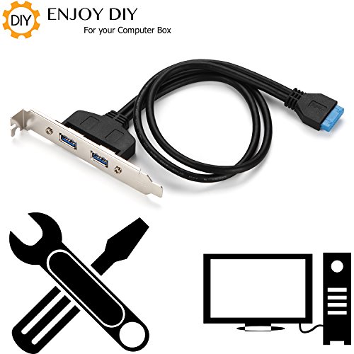 VIMVIP Dual USB 3.0 Female Back Panel to Motherboard 20pin Cable with PCI Bracket 50cm