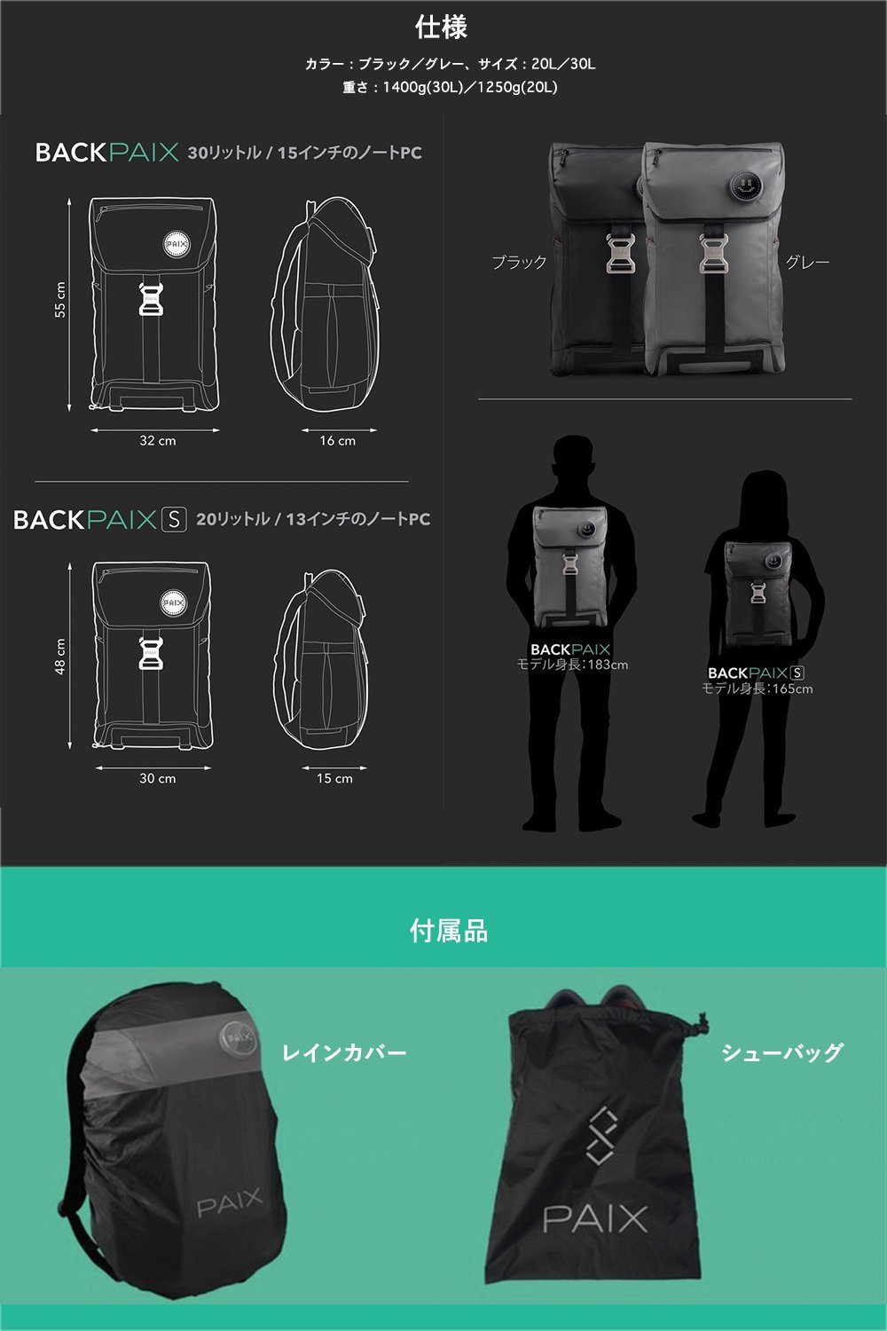 ◆ Size: 30 L / 31.8 cm × 16 cm × 54.9 cm, 20 L / 30 cm × 15 cm × 48 cm