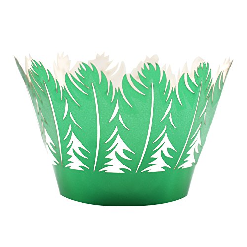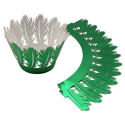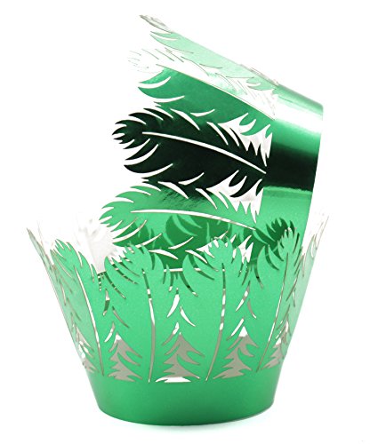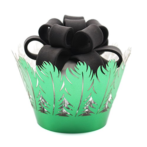 KEIVA Pack of 50 Filigree Artistic Muffin Case Cupcake Paper Cup Liner Little Vine Lace Laser Cupcake Wrappers for Wedding Party Birthday Decoration (Mirror Green)