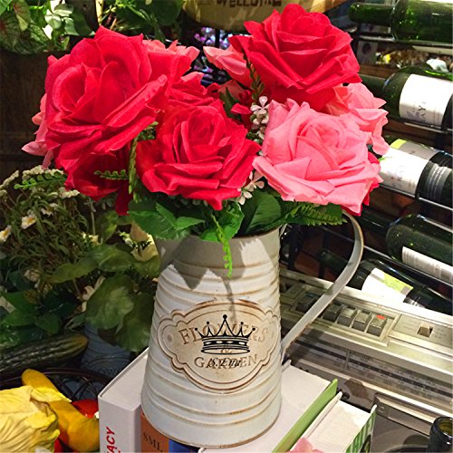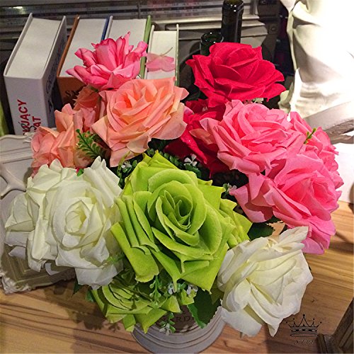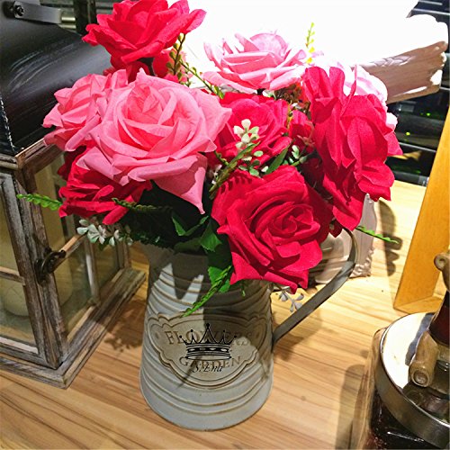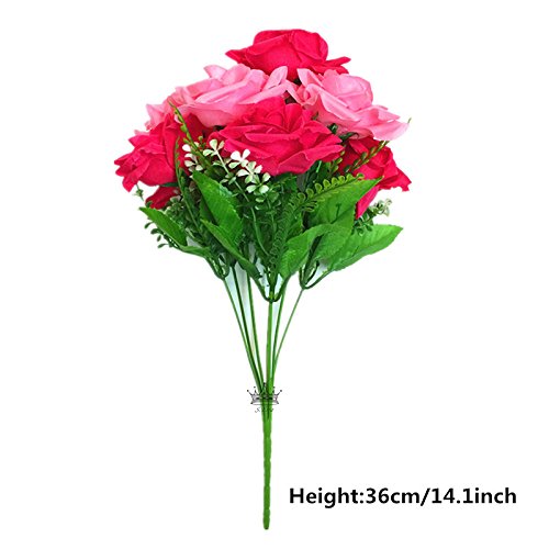 - *BEAUTIFUL & ELEGANT: S. Ena Artificial Silk Fake Two Colors Big Rose Flowers with 7 stems and 7 flower heads, flower diameter 3.15'' in, Each Bunch dimension approx.: 14.1" H x 8.66"W.