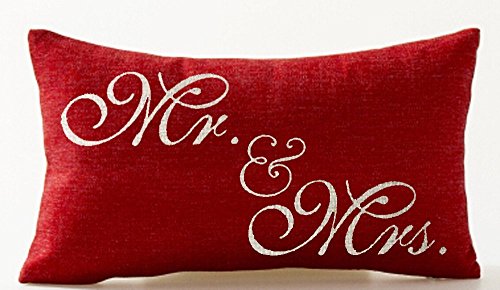 Sweetheart Mr and Mrs Red Valentine's Day Courtship Gift Cotton Linen Decorative Throw Lumbar Waist Pillow Case Cushion Cover Rectangle 12 X 20 Inches
