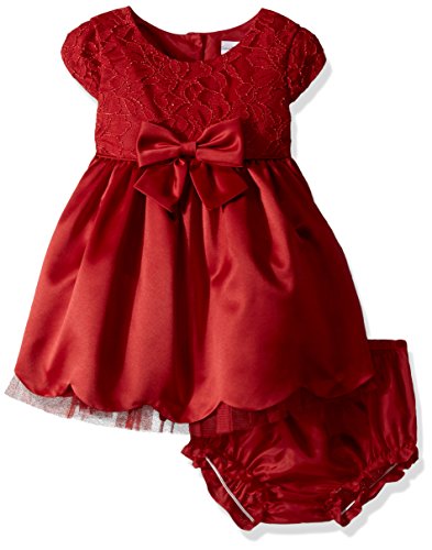 Youngland Baby Girls Short Sleeve Knit Lace Tutu Mesh Dress, Red, 12M