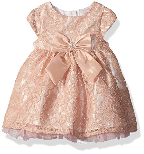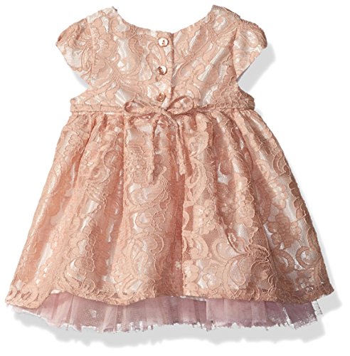 Youngland Baby Girls' Short Sleeve Knit Lace Tutu Mesh Dress, Peach, 24 Months