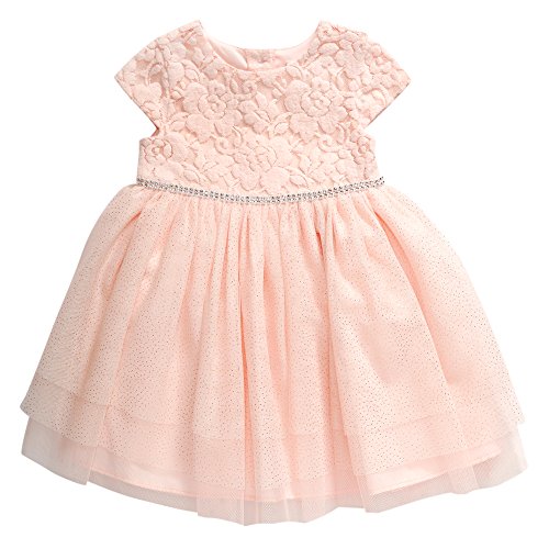 Youngland Baby Girls' Short Sleeve Knit Lace Tutu Mesh Dress, Peach, 18 Months