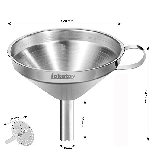 Lakatay 5-Inch Stainless Steel Funnel with Detachable Strainer Filter for Liquid, Dry Powder Ingredients