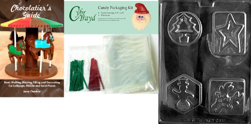 Cybrtrayd Funky 4-Shape Bar Chocolate Mold with Chocolatier's Bundle of 50 Cello Bags, 25 Green and 25 Red Twist Ties and Chocolatier's Guide