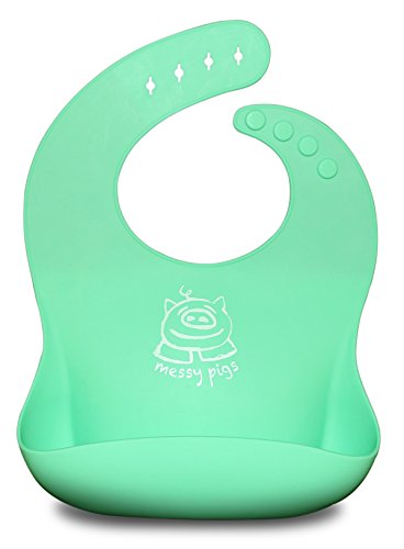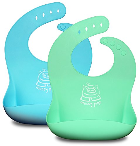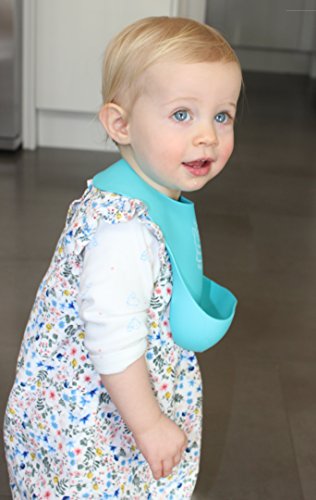 Fun! Silicone Baby Bib with Crumb Catcher, Waterproof Set BPA Free Flexible Silicone Girl and Boy, Stain Resistant Wipes Clean (Blue / Green)