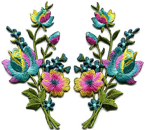 Rainbow roses pair flowers floral bouquet boho embroidered appliques iron-ons patches new