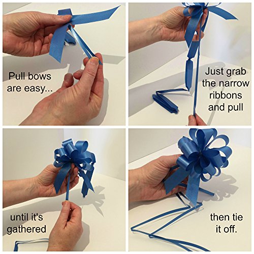 Quick and Easy: 1) Spread the paper filler in the basket. 2) Place the basket in the cellophane bag. 3) Place your gift items (not included) in the basket, then close with the twist tie. 4) Choose which bow color looks best, attach it, and you're done! Pull bow directions: Grab the narrow ribbons, pull until the bow is gathered, then tie it off. After attaching to the basket, those ribbons can be curled or trimmed.