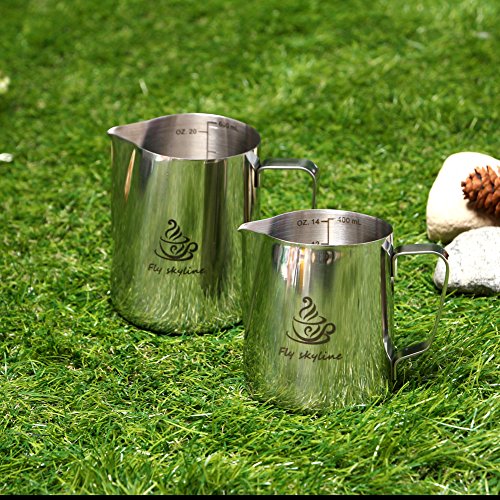 (Fly Skyline)/Kitchen Dining/Coffee, Tea Espresso/DIRECT FROM USA/Fly Skyline Stainless Steel Milk Frothing Pitcher, Measurements Inside the Pitcher While Enjoyi...