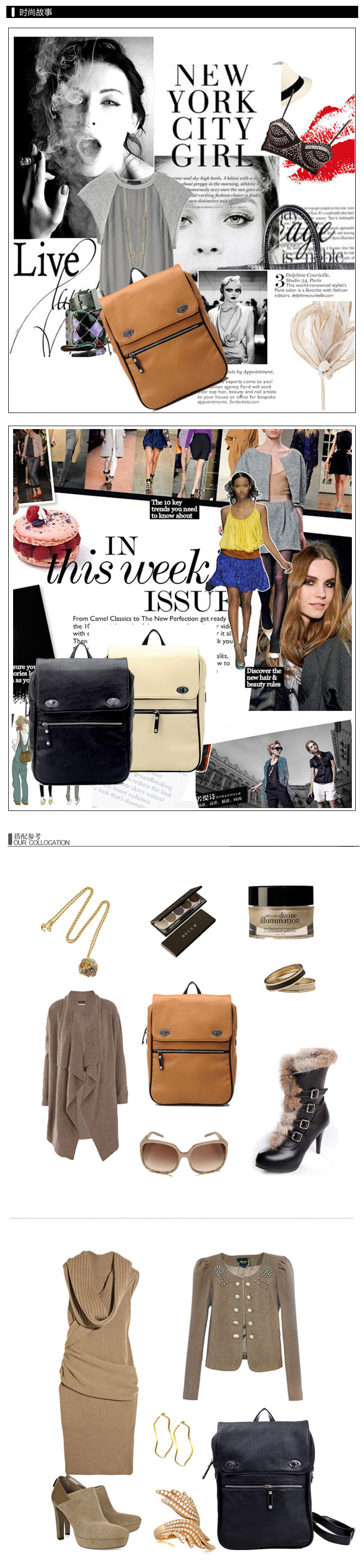 韩版春季新款时尚双肩女包。内部1个拉链袋,2个置物袋