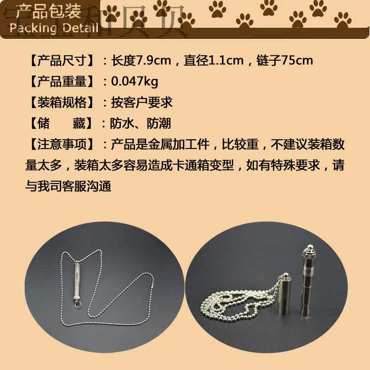 Product size: length 7.9cm, diameter 1.1cm, chain 75cm