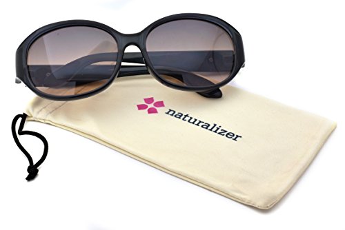 (Naturalizer)/Accessories/Eyewear/DIRECT FROM USA/Naturalizer Women's Oval Sunglasses, Milky Navy Frame with Hardlogo Detail, Smoke to Brown Len...