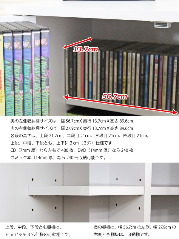 ■最大収納DVDで400枚、CD340枚(奥面棚のみ)