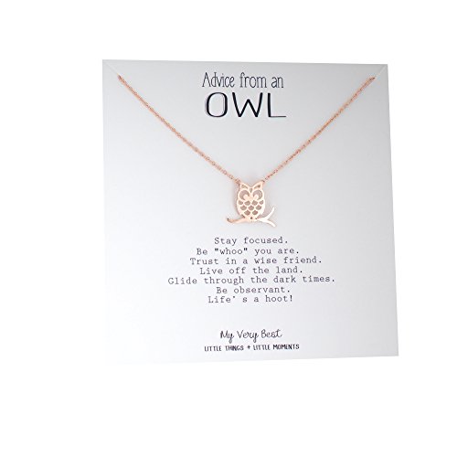 minimal dainty wise and smart night owl sitting on branch necklace, best friend gift necklace, lucky charm jewelry
