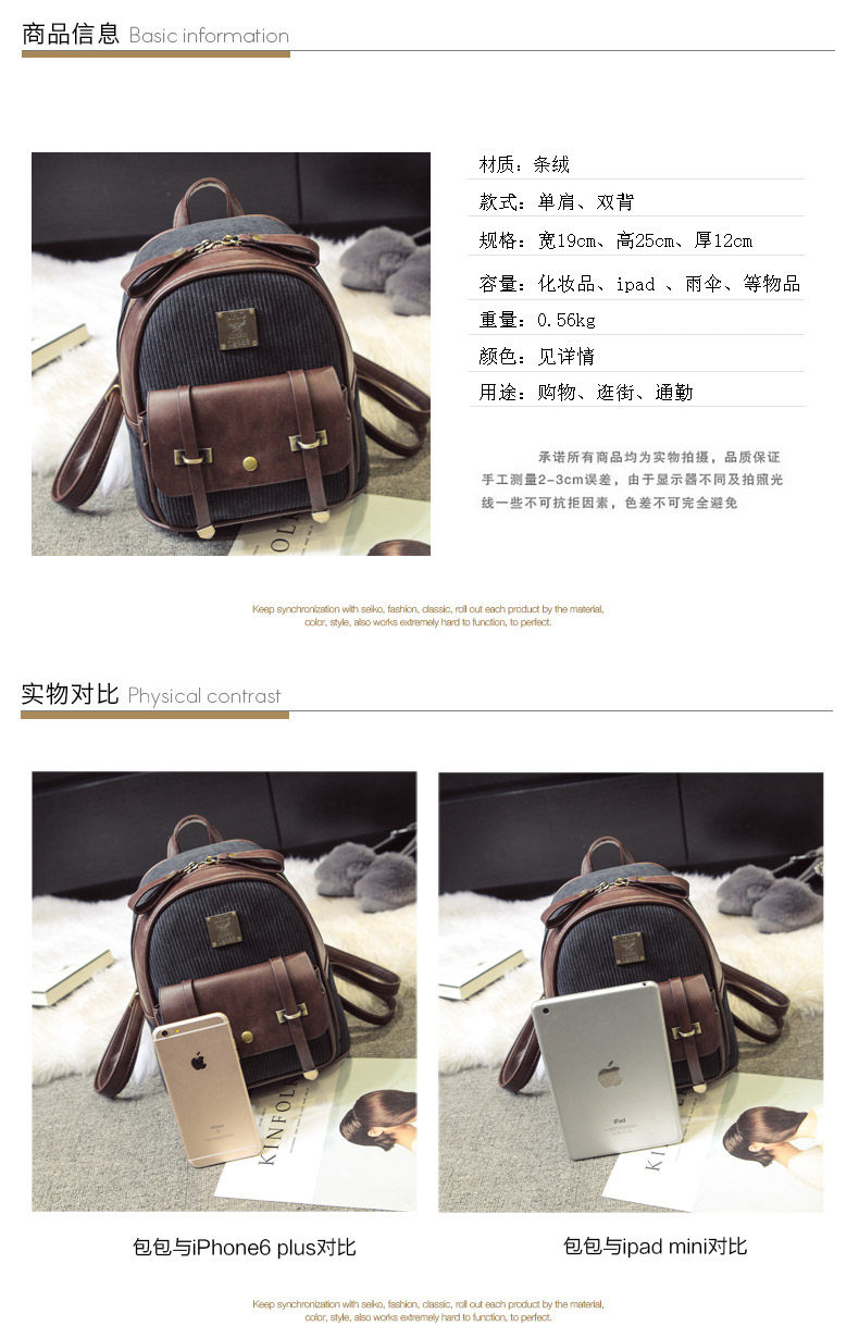 Size: Medium Is there a back cushion cotton: no Suitable for: youth Waterproof: Water repellent Gender: Female Texture: velvet Pick up parts type: soft handle Closed way: zipper Internal structure: zipper pocket phone bag document bag Popular elements: Hit color pattern: plain Bags hardness: soft Foldable: No Condition: New Applicable scene: leisure Style: Japan and South Korea Shape: vertical section square Shoulder strap style: double root Lining material: polyester-cotton