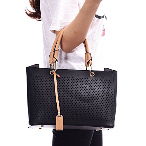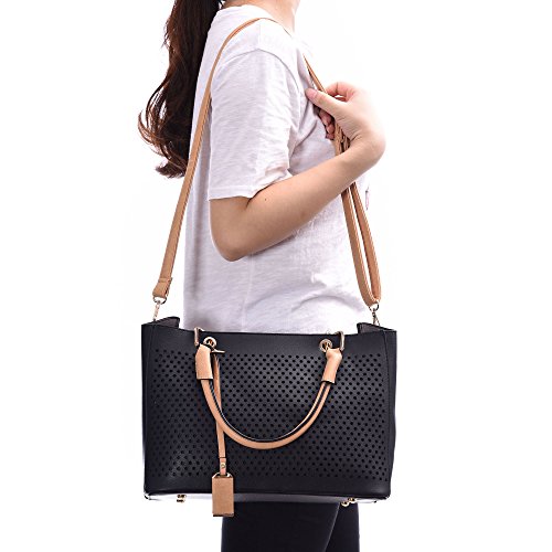 -. Feature : This bag made of top quality faux leather. / Approximate Dimensions: The top handle handbag :12"X8.6"X6.5 inches, crossbody bag:8.8"X6.6"X3.9 inches / The top handle handbags (the largest one) has a interior pockets, with a big open compartments.The crossbody bag (the small size one) comes with a strap to be worn as a cross body bag. It is convenient when you only want a few items. you can use it for keys, phones, wallet. / An adjustable and detachable strap;Metal feet protectors on bottom. Handle drop is at approximately 6.6 inches in height.Removable and adjustable shoulder strap drop is at approximately 42.5 inches. Can be used as tote, cross body bag or shoulder bag. / Simple and fashion design. Never go out of style of handbag for you.