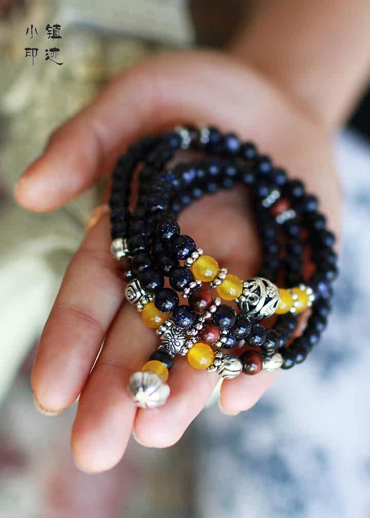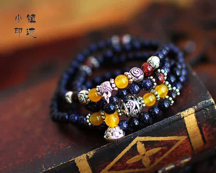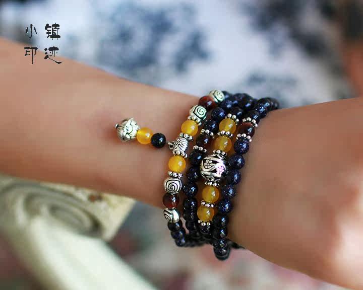 Specifications: Bracelet fold about 40cm (including pendants), blue sand diameter of about 5mm, yellow chalcedony diameter of about 5mm, opal diameter of about 6mm, 4-5 ring can be worn around the hand