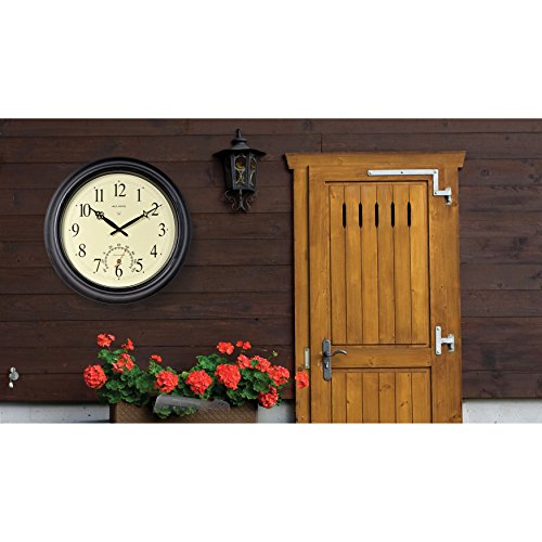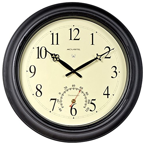 -. Binding : Kitchen -. Brand : Chaney Instruments -. Color : Black -. Feature : 18-inch diameter / Durable metal case with antique-style metal hands / Automatically adjusts with radio-controlled movement / Temperature display in degrees Fahrenheit / Can be used indoors or outdoors -. Label : Chaney Instrument Co -. Manufacturer : Chaney Instrument Co -. MPN : 50308A2 -. PackageQuantity : 1 -. PartNumber : 50308A2 -. ProductGroup : Home -. ProductTypeName : HOME -. Publisher : Chaney Instrument Co -. Studio : Chaney Instrument Co -. Title : Chaney Balmoral Atomix Black 18 in. Wall Clock