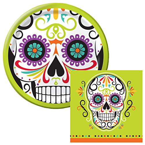 Skelebration Sugar Skull Dessert Napkins & Plates Party Kit for 8 Day of the Dead