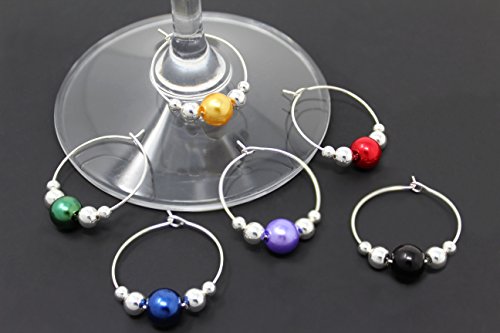 -. Title : GLASS PEARL Wine Glass Charms (Set of 6) by Claim Your Glass - Premium Drink markers for stemmed Wine, Champagne, Martini Glasses - Includes Storage Case + BONUS Velveteen Bag