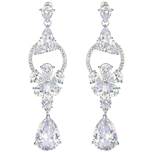 -. Title : EVER FAITH Silver-Tone Cubic Zirconia Austrian Crystal Tear Drop Hibiscus Flower Dangle Earrings Clear