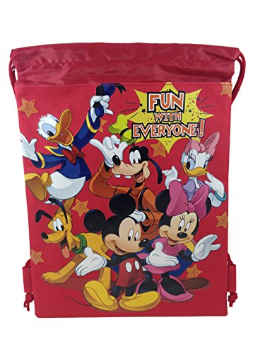 New Red Mickey Mouse & Friends Drawstring Backpack -Fun with Everyone!
