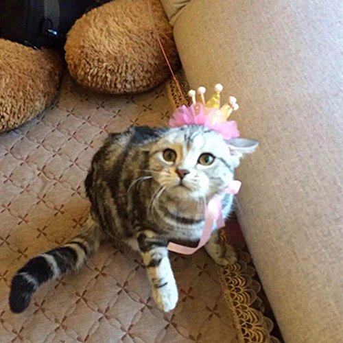-. Title : ACTLATI Fancy Kitten Crown Headwear Cat Dog Doggy Party Hat Faux Pearl Priness Lace Hair Accessary
