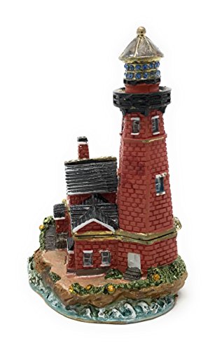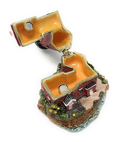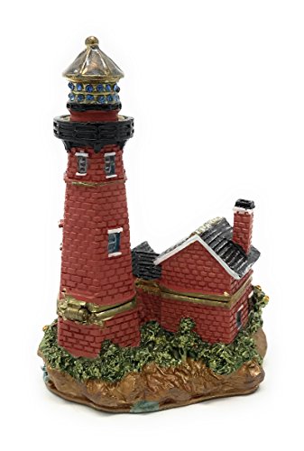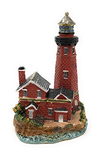 Enameled Red Brick Lighthouse Trinket Box by Kubla Craft, Accented with Austrian Crystals