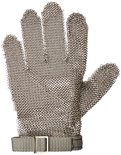 -. Feature : Lightweight stainless steel mesh construction / Antimicrobial wrist band with snap closure / Reversible and easy to clean / Available in sizes XS-XL / Provides maximum cut protection