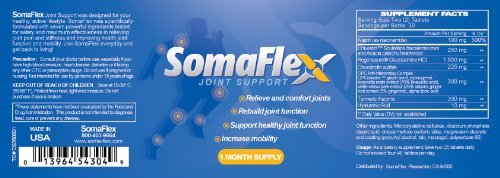 Hyaluronic Acid - coats every cartilage cell in the body. It combines with several other substances to make the cartilage resilient to compression. Hyaluronic Acid also tends to make up a smaller percentage of most joint supplements (less than 4mg). SomaFlex contains 10mg in each serving.