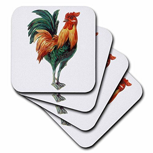 3dRose cst_104655_1 Vintage Ornate Colorful Rooster Bird Illustration Soft Coaster (Set of 4)