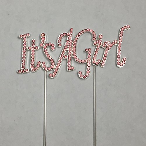 - Sparkling silver plated "It's A Girl" baby shower cake topper with beautiful pink rhinestones