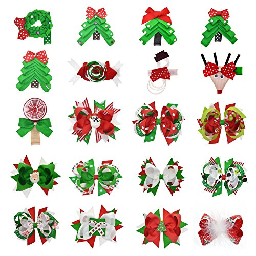 Binding : Apparel Product Description Total Description Product description These Christmas Boutique Bows are handmade. Set of 20 pcs Christmas pattern bows are perfect gift for newborns, toddlers, baby girls, little girls, big girls, women, etc These assortment hair bows are made by environmental good quality grosgrain ribbon and attached with sturdy alligator clip. easy attachment to hair and no slip. Our History LCLHB is a professional hair accessories factory with more than 10 years experiences. LCLHB offers the most fashionable and cutest patterns with great quality in the market. LCLHB highly appreciate all customers' opinions to improve products and service If you are unsatisfied, pls come to our Customer Service freely.