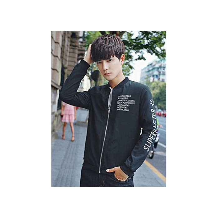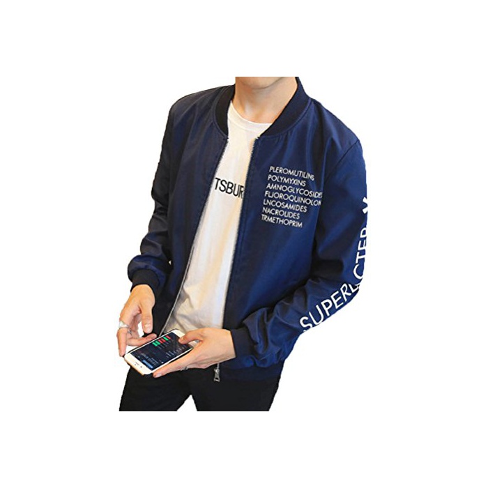 Smile lala 【Smile LaLa】 맨즈 영자 로고 점퍼 라이트 아우터 심플 캐주얼 스타디움 점퍼 MA-1 블루존 방한 재킷
