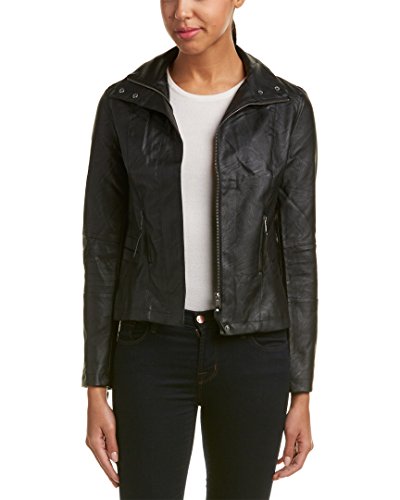 Product DescriptionBlack faux leather moto jacket with silver zipper detail0
