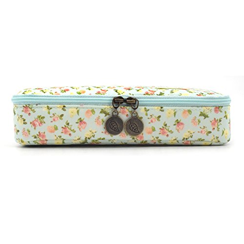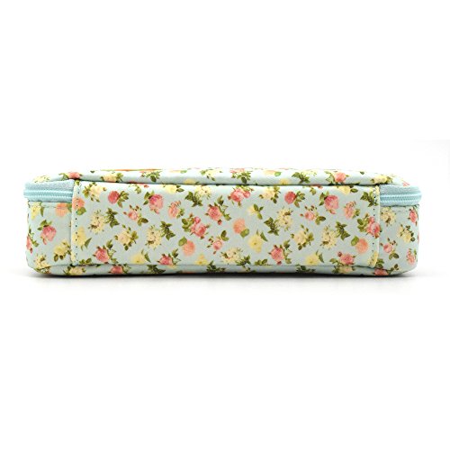 Pencil Case, Twinkle Club Pen Bag Makeup Pouch Zipper Box Office Organizer Rose Floral, Cyan